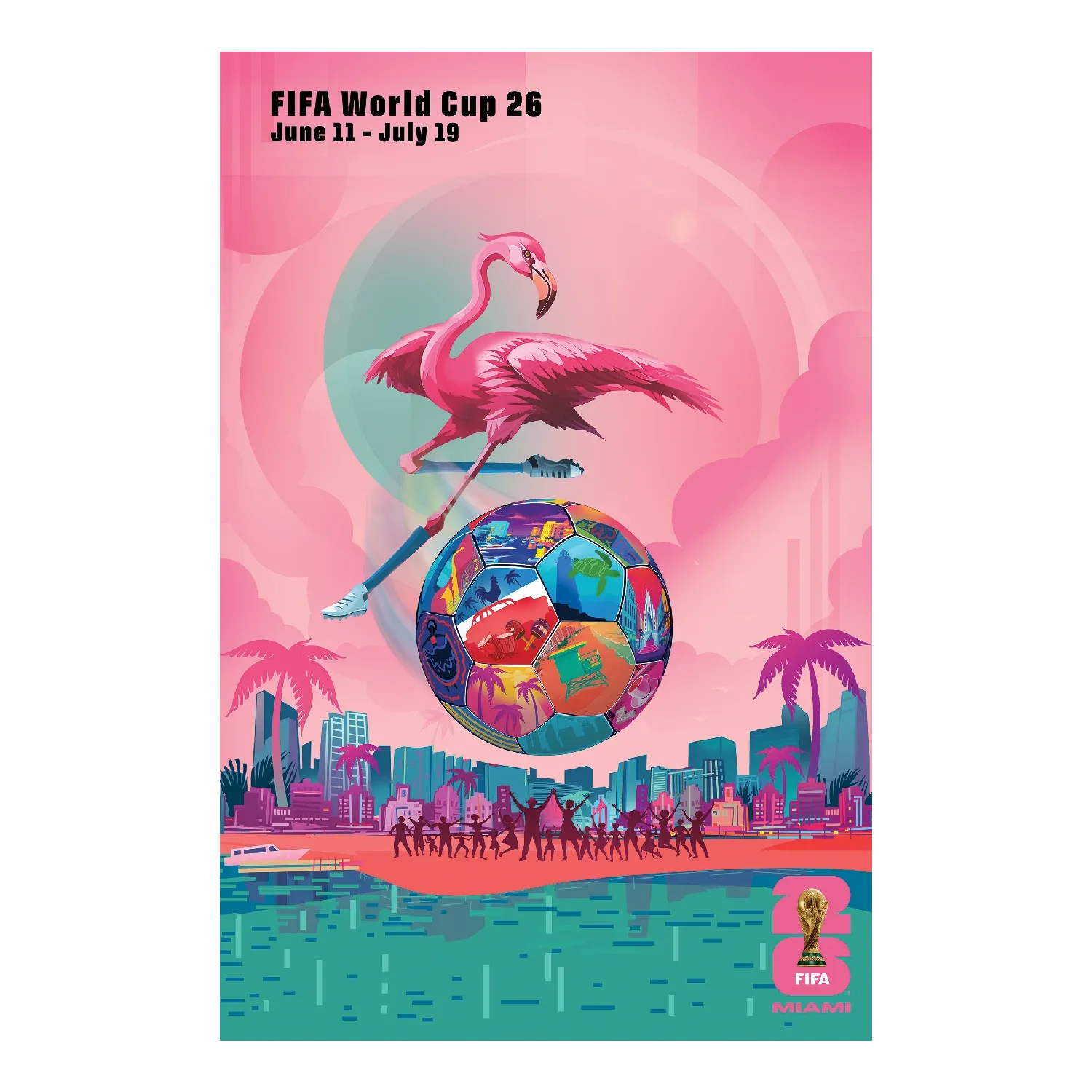 We developed 16 bespoke city brand identities, each one a collaboration with local artists and communities. The official Host City Posters exemplify this strategy - commissioned from artists in each city, they translate the We Are 26 framework through distinctly local artistic voices, from the vibrant muralism of Mexico City to the bold street art energy of Miami.